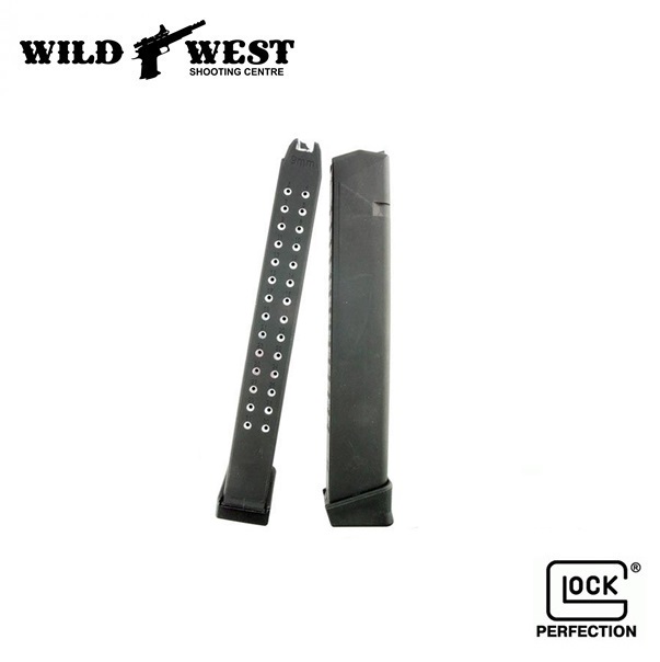 This is a factory original, drop-free magazine for your Glock. Glock magazines have a hardened steel insert encased in high tech polymer. This polymer coating protects the magazine and prevents deformation, even when dropped from a great height. Pinned to 10 rounds for Canadian legality