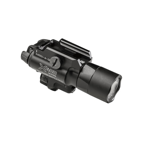 The SureFire X400 Ultra WeaponLight integrates stunningly powerful white-light illumination and bright red laser aiming capabilities in one compact rail-mountable package, an extremely effective combination for close- to medium-range engagements in law enforcement, military, and self-defense applications.